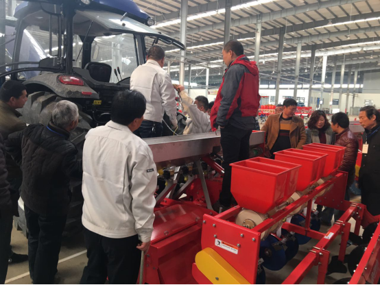 現場會上,亞澳專業技術人員及銷售經理對我廠新研發的花生精量播種機做了詳細介紹,各鄉鎮社員及各站站長針對花生種植技術、施肥方法和機械化播種等方面做了詳細講解。隨后,60名用戶和農技人員一同觀摩了機械化播種演示。